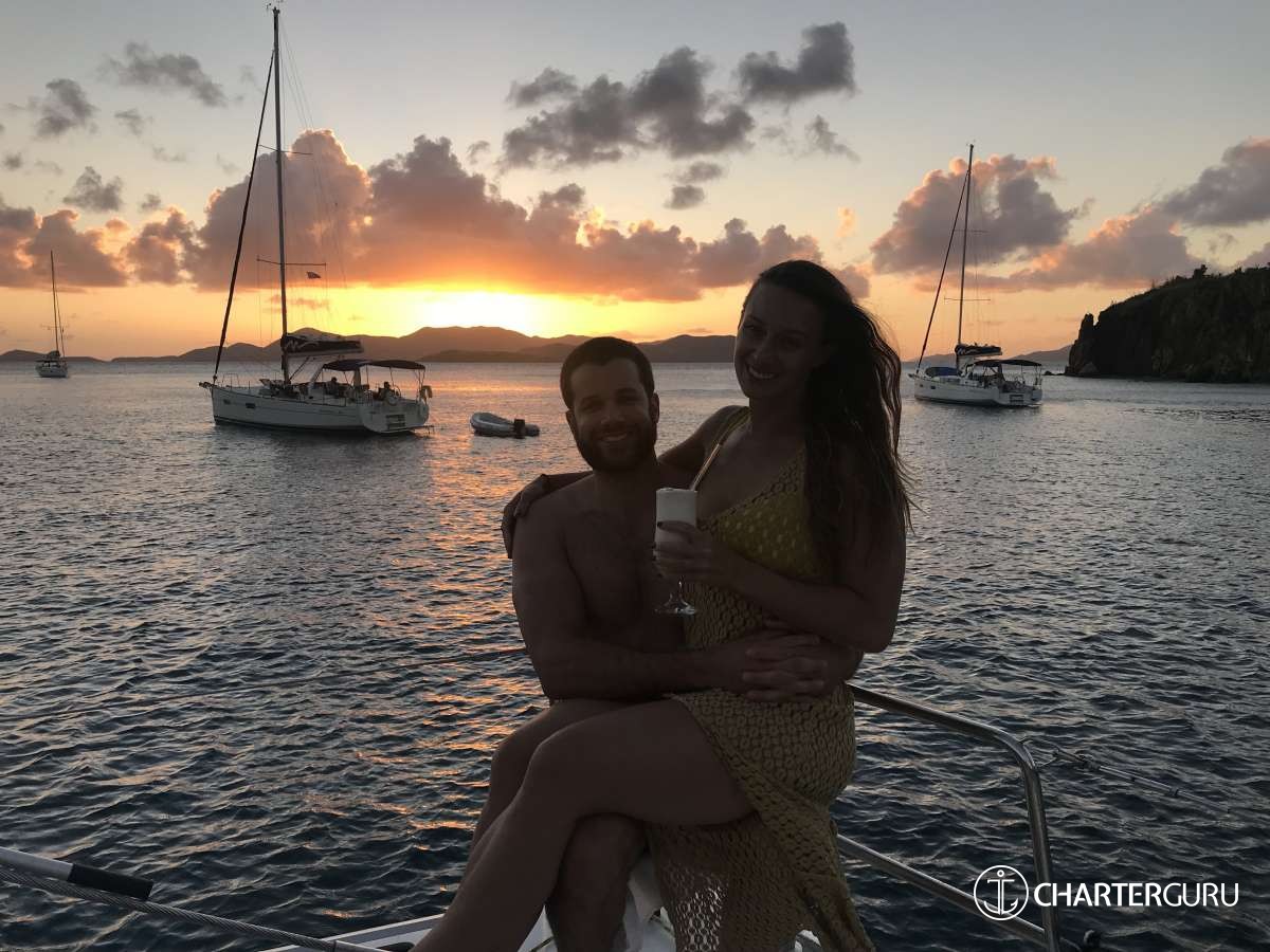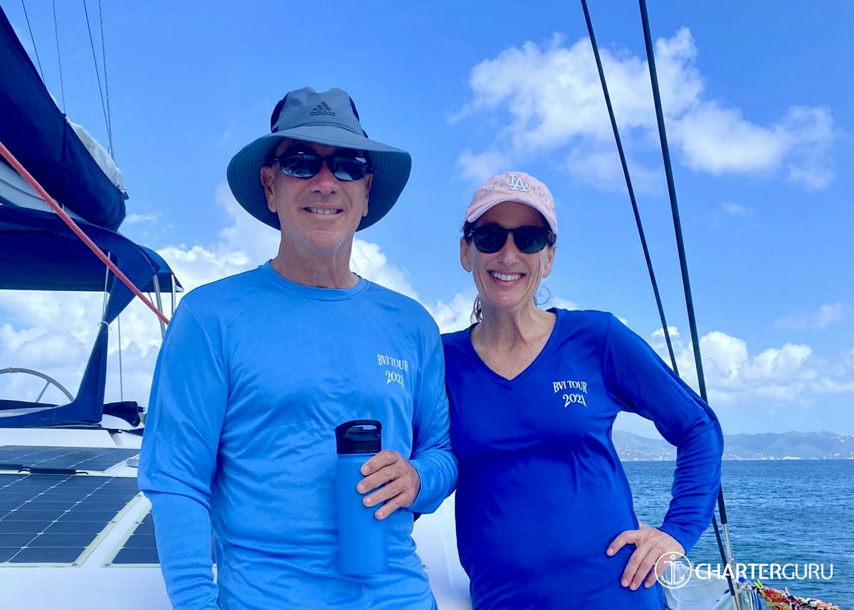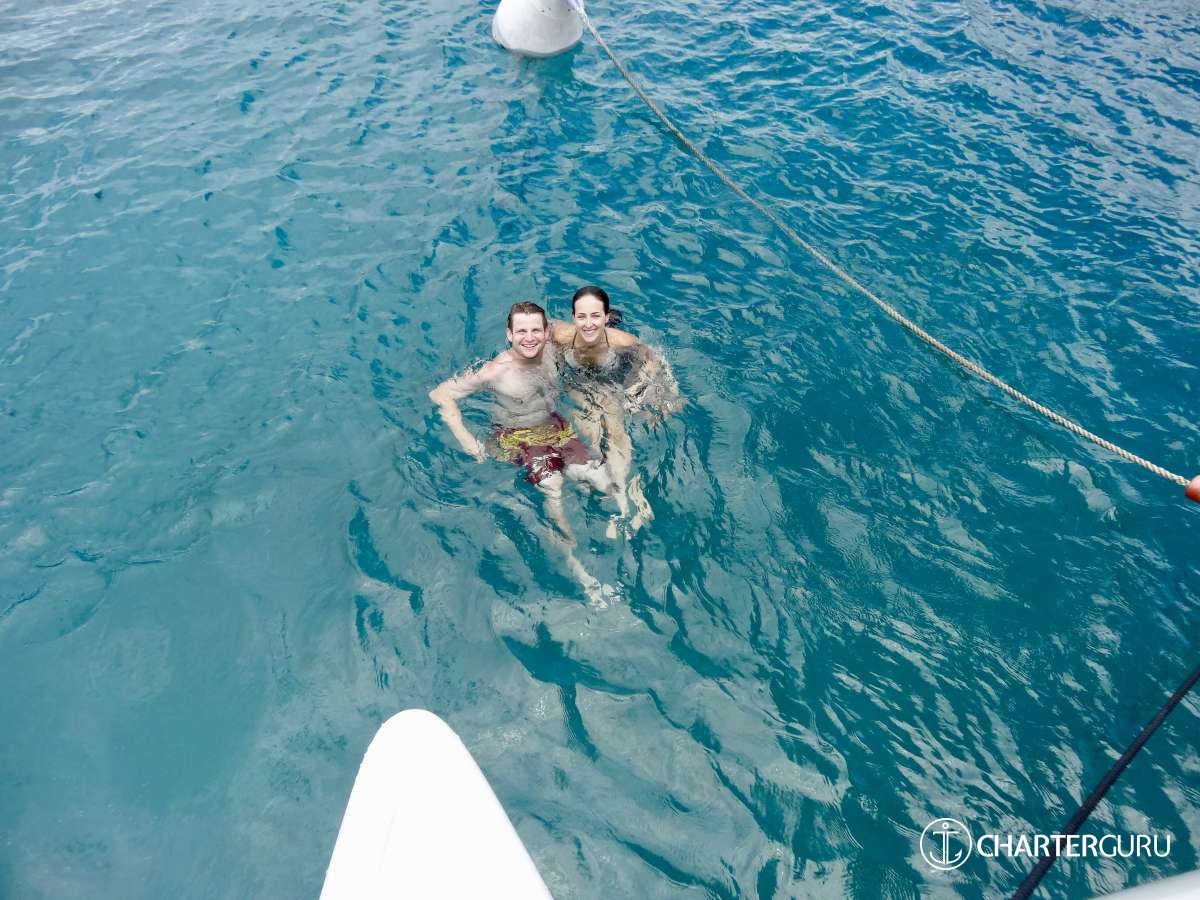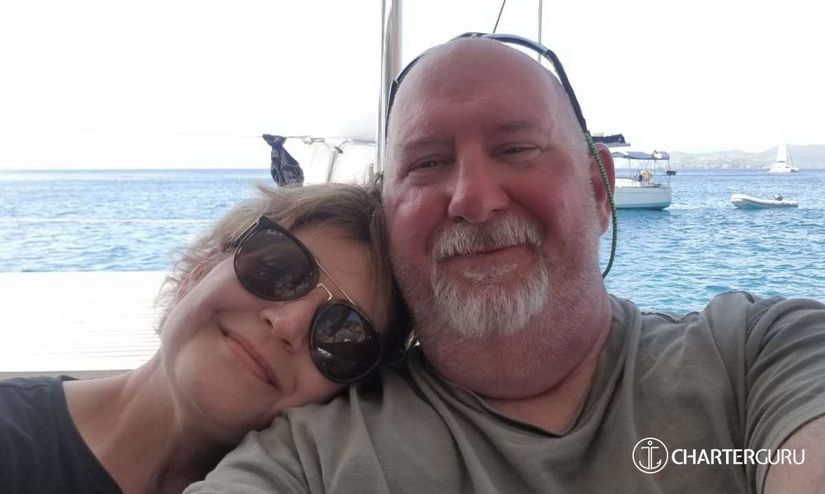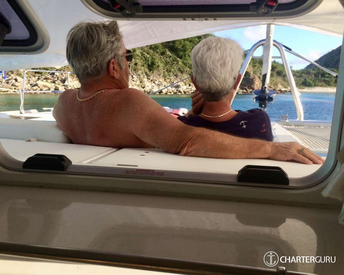 “Beautiful waters, great sailing days, super snorkeling, baths, bubbly pool, 5 star breakfast, lunch and dinners, snacks, refreshing drinks, sweet Katlyn, and the manner in which you served us….all well beyond measure!! And yet you offered us even more! Your love for your country, the love of your family, your desire to treat all with dignity and honor, and the obvious commitment, respect and love for each other! We feel fortunate and blessed to have crossed paths with you two! Our hope is to see you again. If you are ever near Texas…..(golf included)! ~ Nawanda and Dean