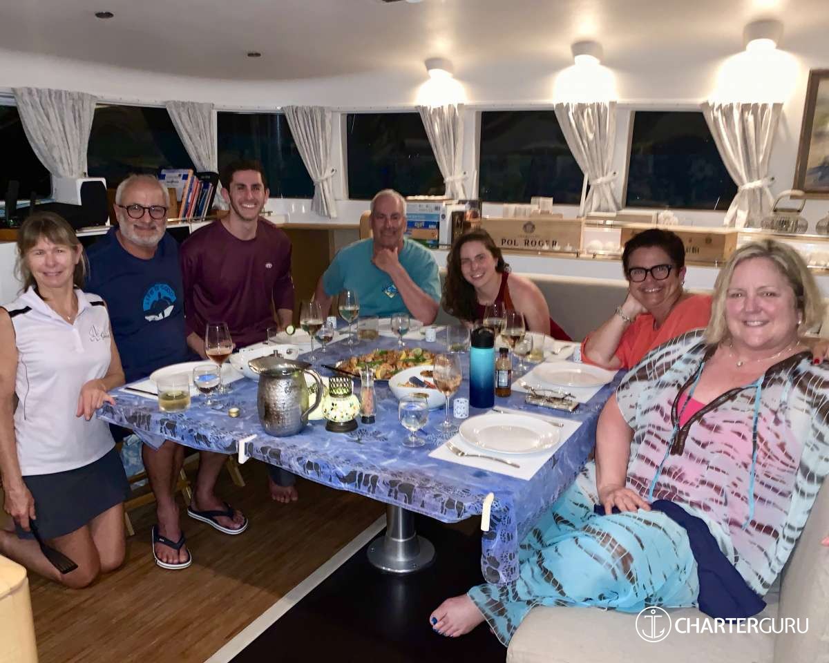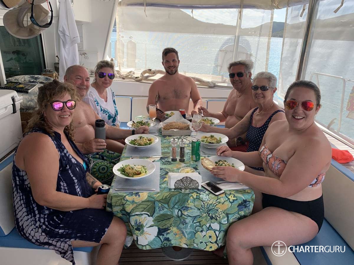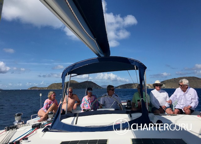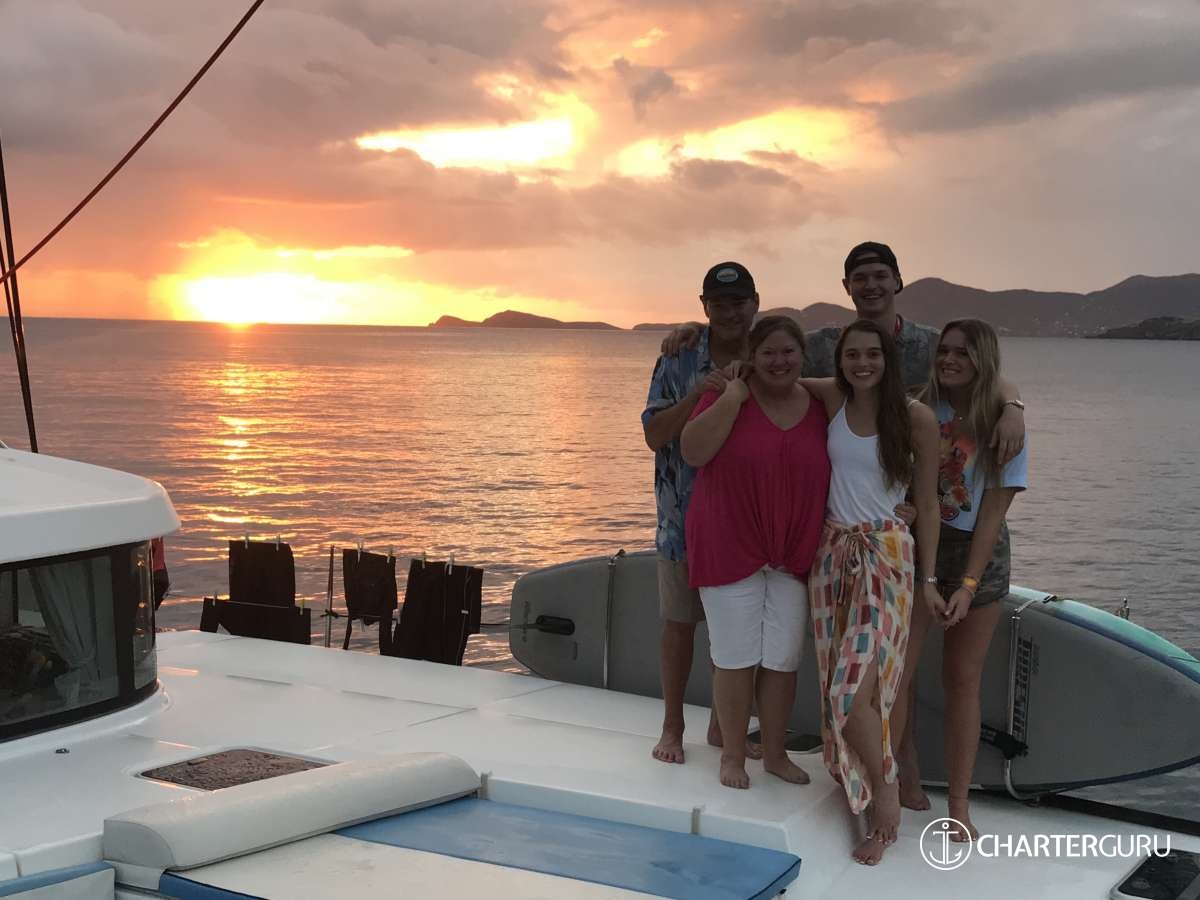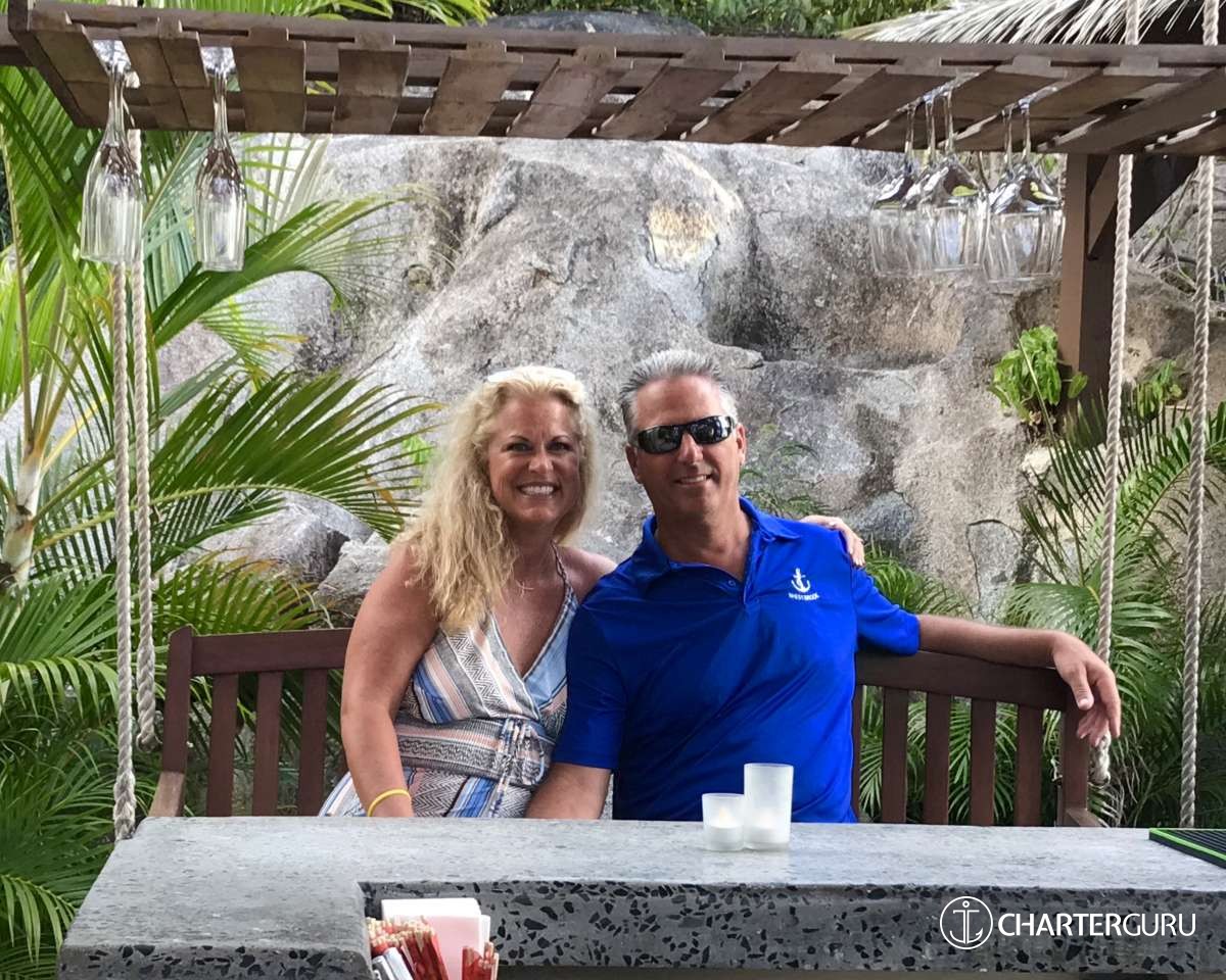 “Beautiful waters, great sailing days, super snorkeling, baths, bubbly pool, 5 star breakfast, lunch and dinners, snacks, refreshing drinks, sweet Katlyn, and the manner in which you served us….all well beyond measure!! And yet you offered us even more! Your love for your country, the love of your family, your desire to treat all with dignity and honor, and the obvious commitment, respect and love for each other! We feel fortunate and blessed to have crossed paths with you two! Our hope is to see you again. If you are ever near Texas…..(golf included)! ~ Nawanda and Dean