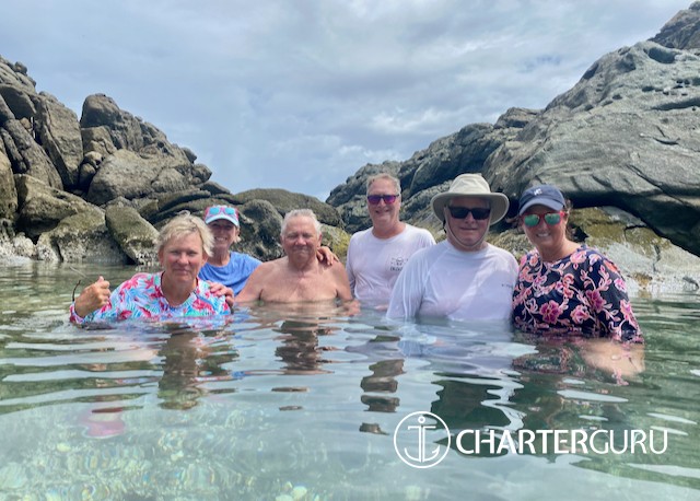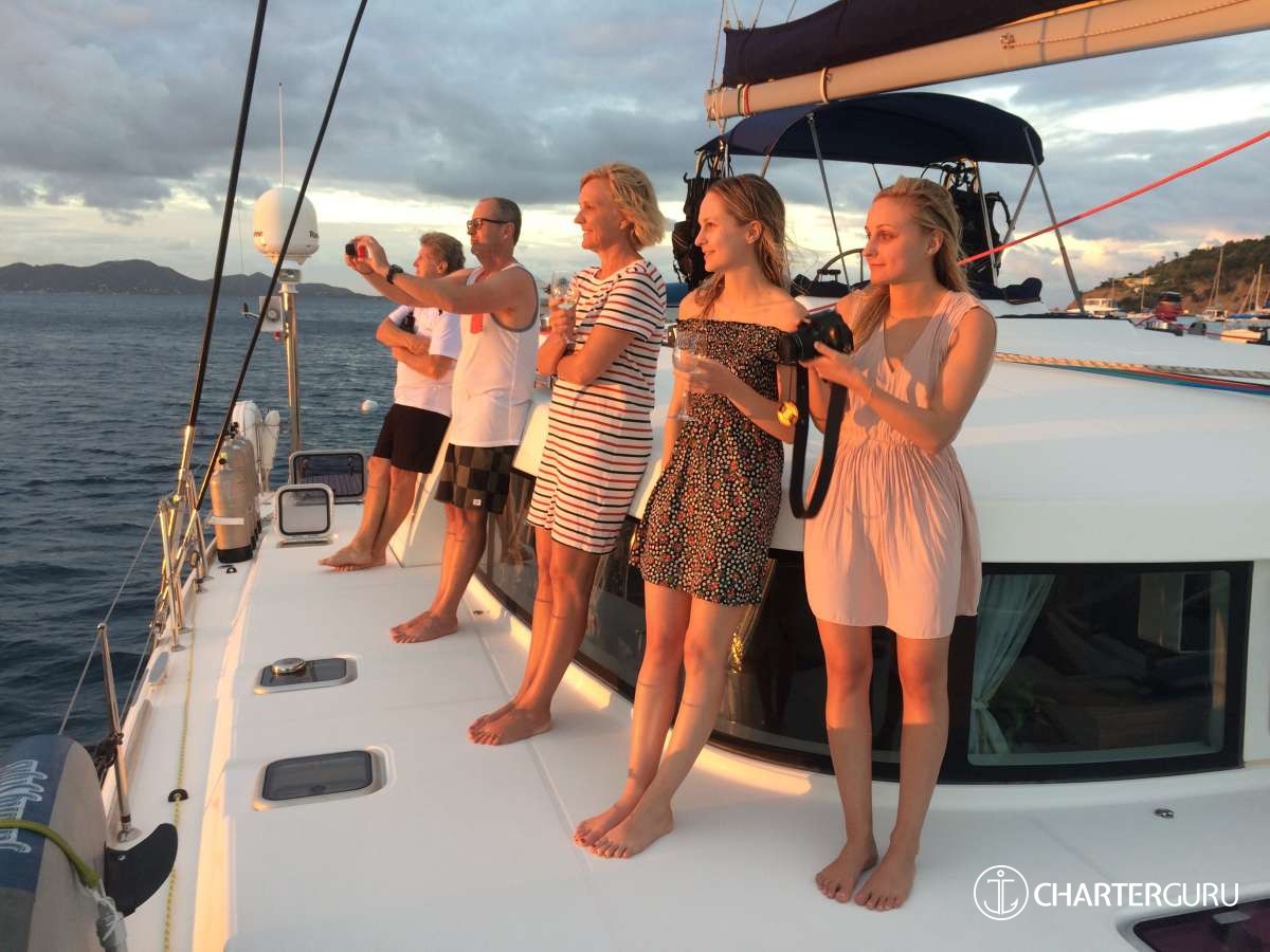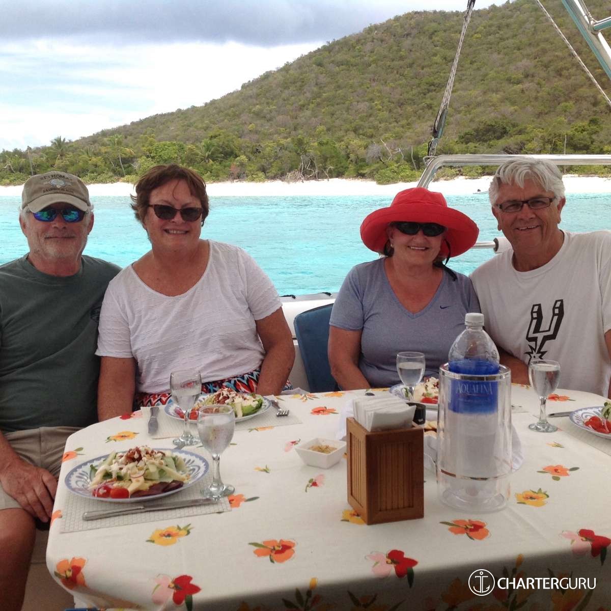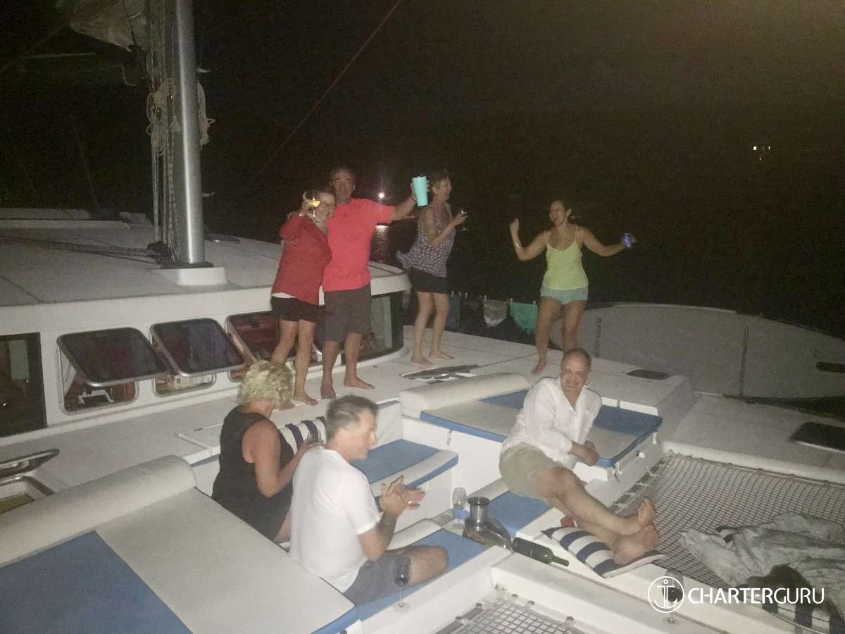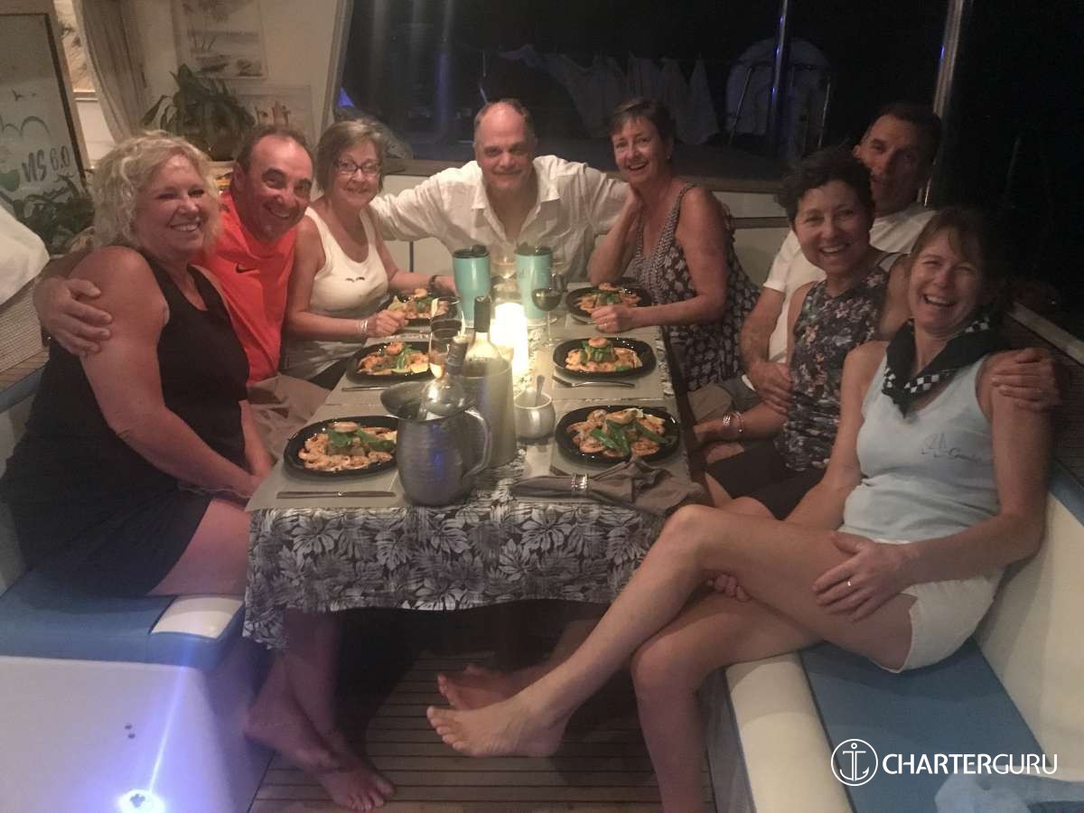 “Beautiful waters, great sailing days, super snorkeling, baths, bubbly pool, 5 star breakfast, lunch and dinners, snacks, refreshing drinks, sweet Katlyn, and the manner in which you served us….all well beyond measure!! And yet you offered us even more! Your love for your country, the love of your family, your desire to treat all with dignity and honor, and the obvious commitment, respect and love for each other! We feel fortunate and blessed to have crossed paths with you two! Our hope is to see you again. If you are ever near Texas…..(golf included)! ~ Nawanda and Dean