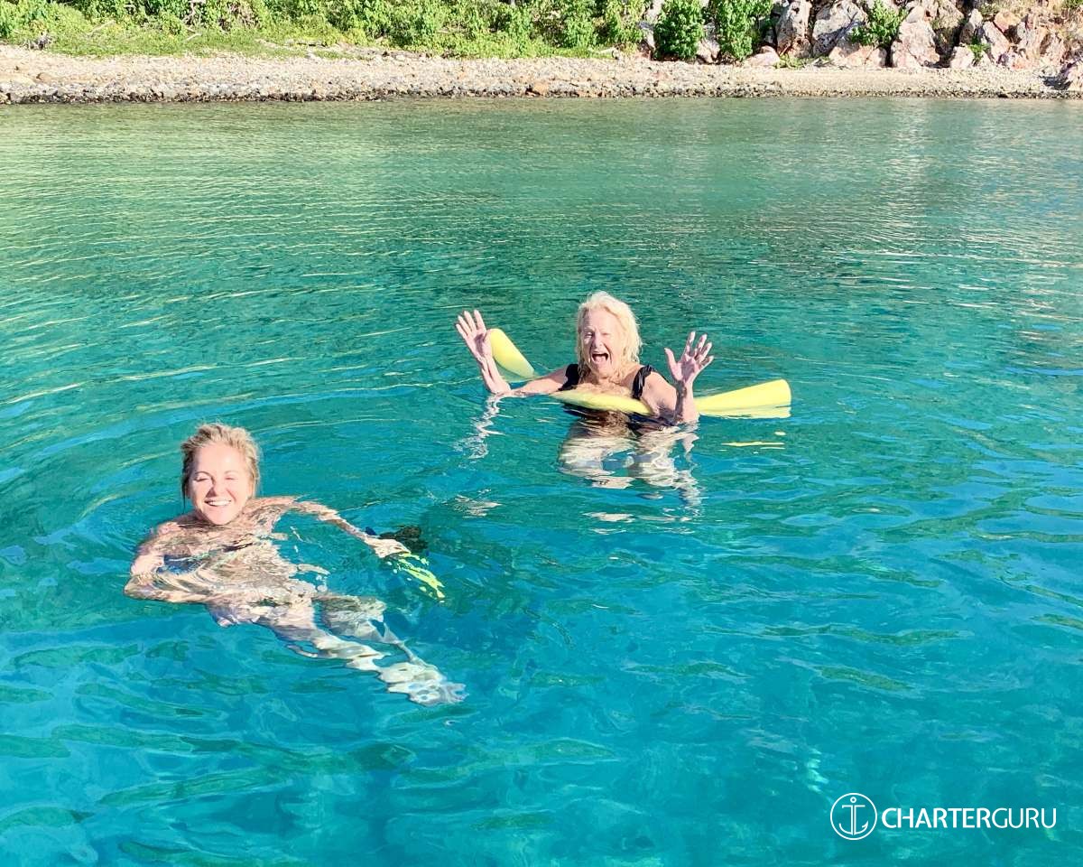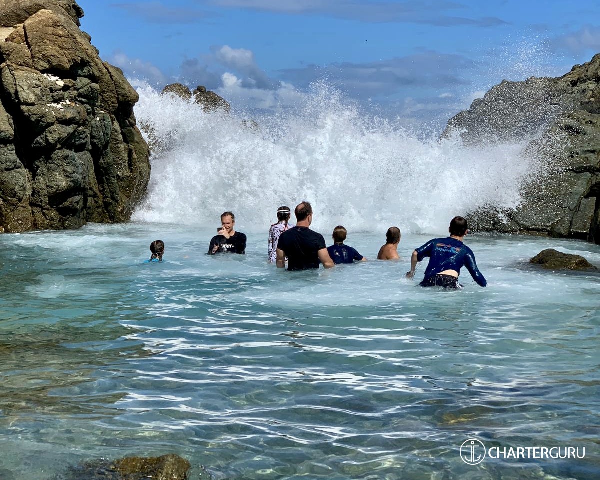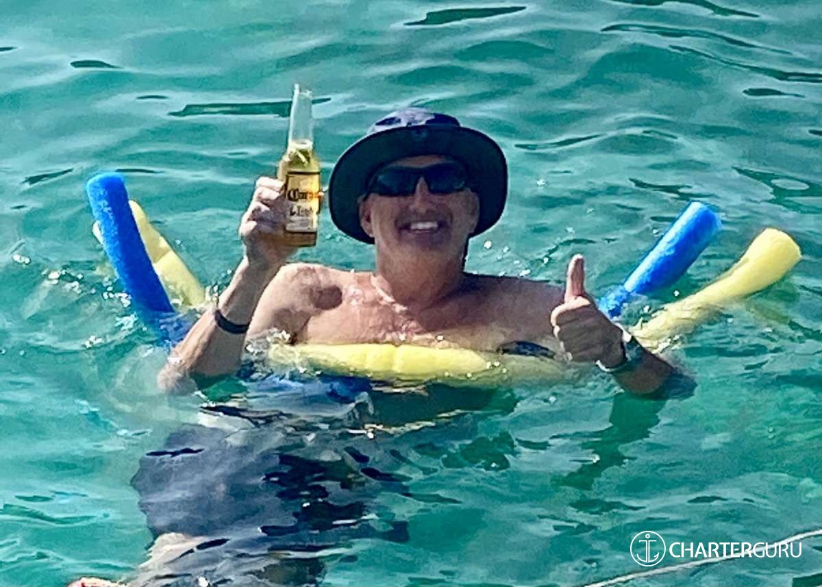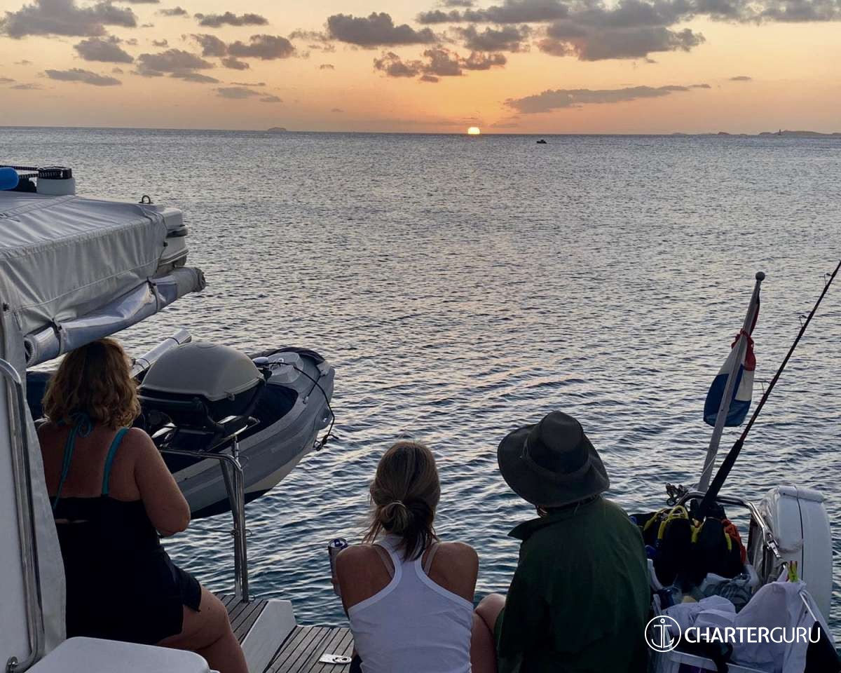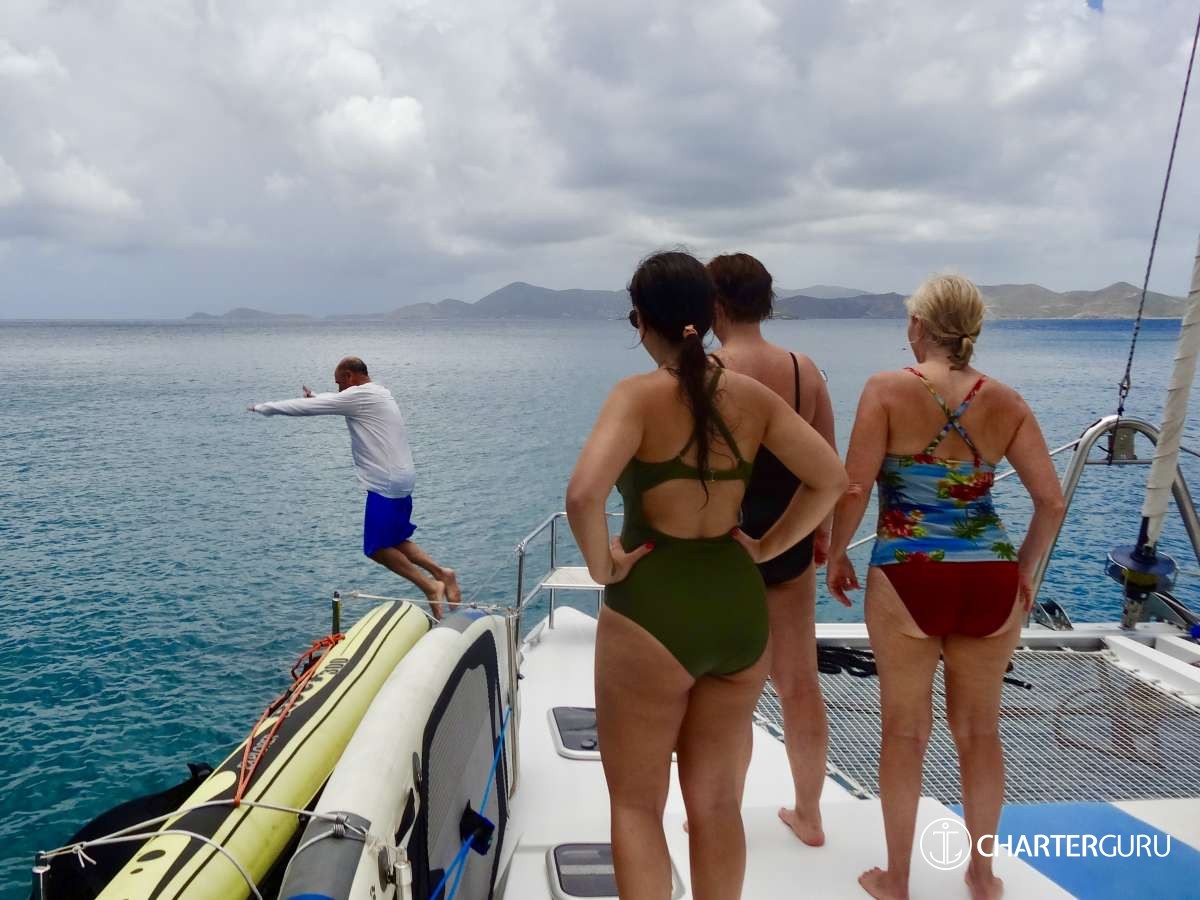 “Beautiful waters, great sailing days, super snorkeling, baths, bubbly pool, 5 star breakfast, lunch and dinners, snacks, refreshing drinks, sweet Katlyn, and the manner in which you served us….all well beyond measure!! And yet you offered us even more! Your love for your country, the love of your family, your desire to treat all with dignity and honor, and the obvious commitment, respect and love for each other! We feel fortunate and blessed to have crossed paths with you two! Our hope is to see you again. If you are ever near Texas…..(golf included)! ~ Nawanda and Dean