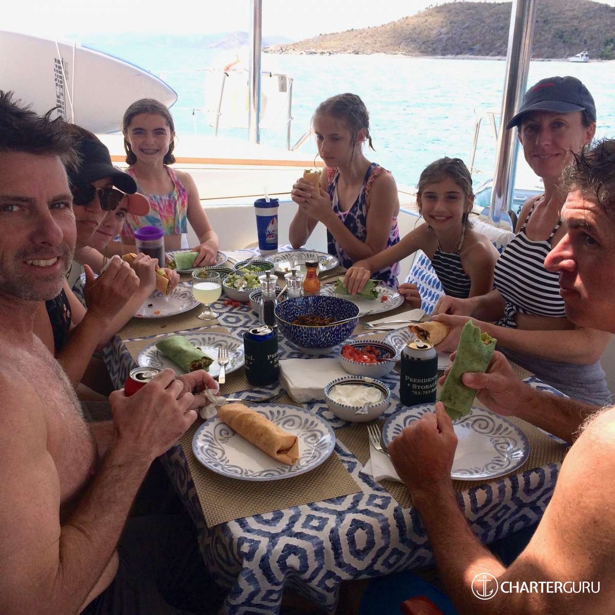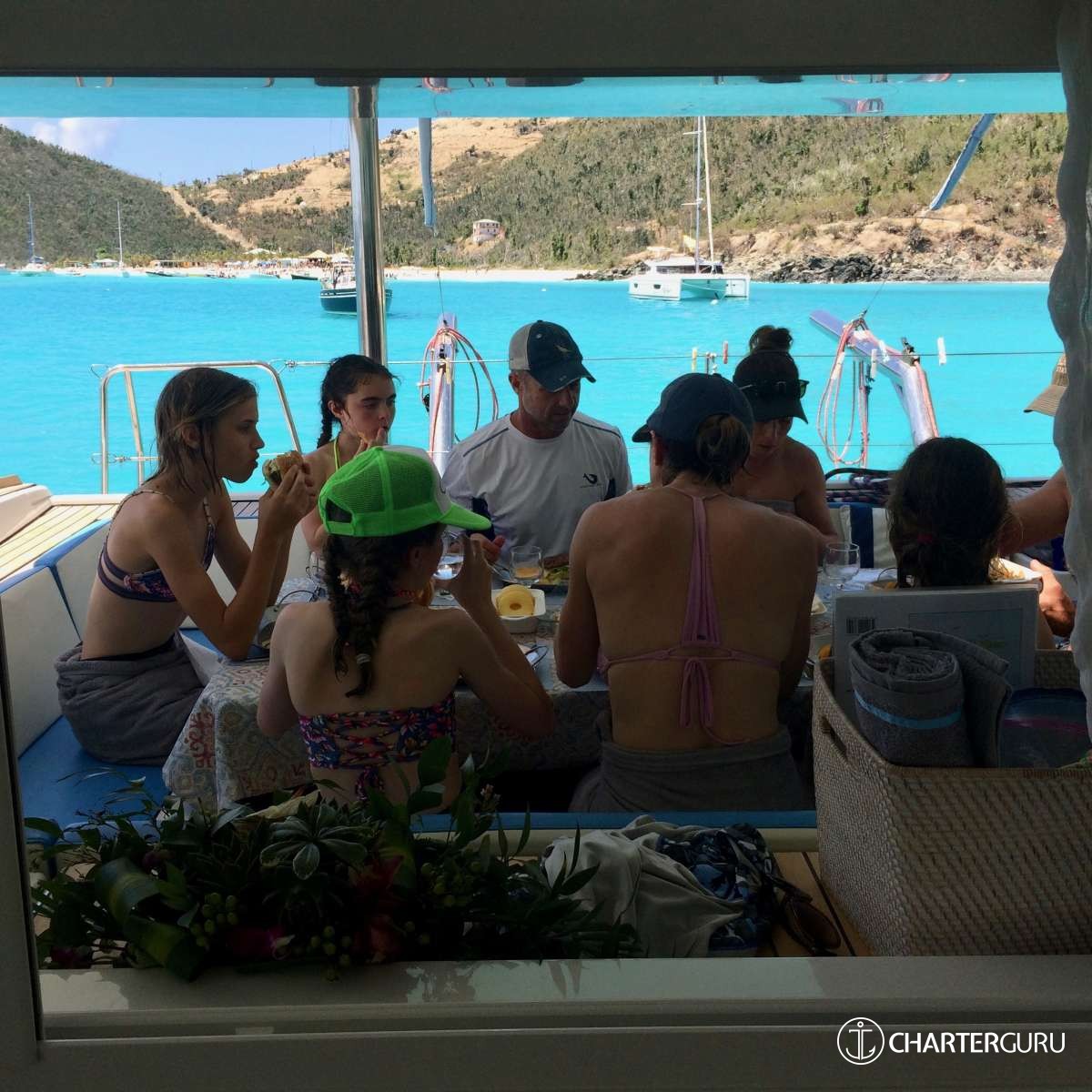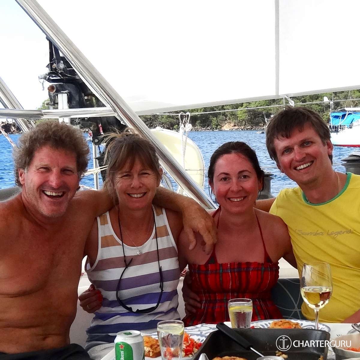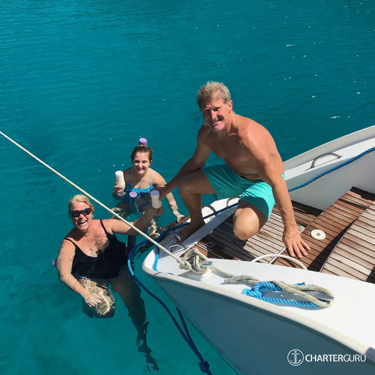 “Beautiful waters, great sailing days, super snorkeling, baths, bubbly pool, 5 star breakfast, lunch and dinners, snacks, refreshing drinks, sweet Katlyn, and the manner in which you served us….all well beyond measure!! And yet you offered us even more! Your love for your country, the love of your family, your desire to treat all with dignity and honor, and the obvious commitment, respect and love for each other! We feel fortunate and blessed to have crossed paths with you two! Our hope is to see you again. If you are ever near Texas…..(golf included)! ~ Nawanda and Dean