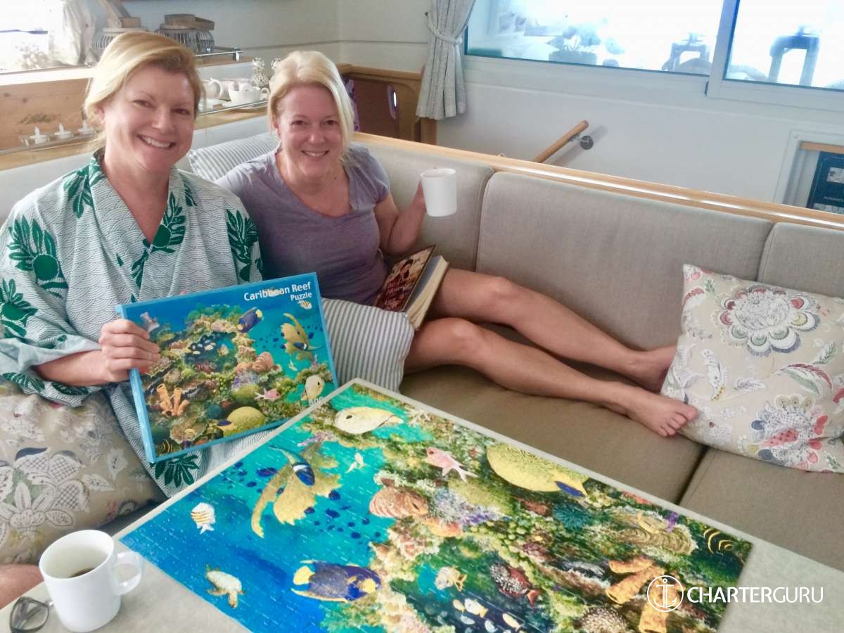 All of us were for the first time on a catamaran cruise and for the first time in the Caribbean when we first boarded Katlyn in April 2015 - and we were completely and utterly overwhelmed. Not only by the outstanding natural beauty of the Grenadine islands, but also by the kind, personal and in every respect exceptional hospitality of our lovely hosts Doug and Val, who made us feel at home from the very first minute and made every day another day in paradise! Each day, Doug untiringly selected most beautiful islands and beaches for us to explore, took us to mindblowing snorkling spots (we'll never, never forget Tobago Cays!), and Val spoiled us with the most amazing meals she produced with a lot of love and creativity in the tiny galley on board Katlyn.