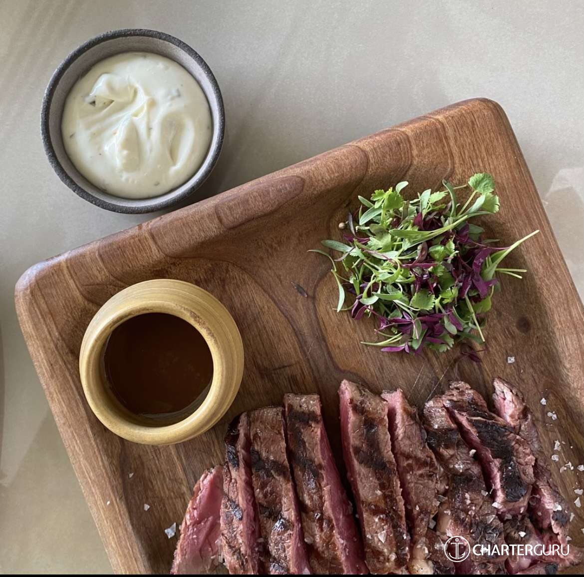 The expenses, such as provisioning, fuel, marina fees, are deducted from the APA. The APA is based on the price of the yacht and ranges from 15% (crewed sailing yachts) to 30% (motor yachts with higher fuel consumption).