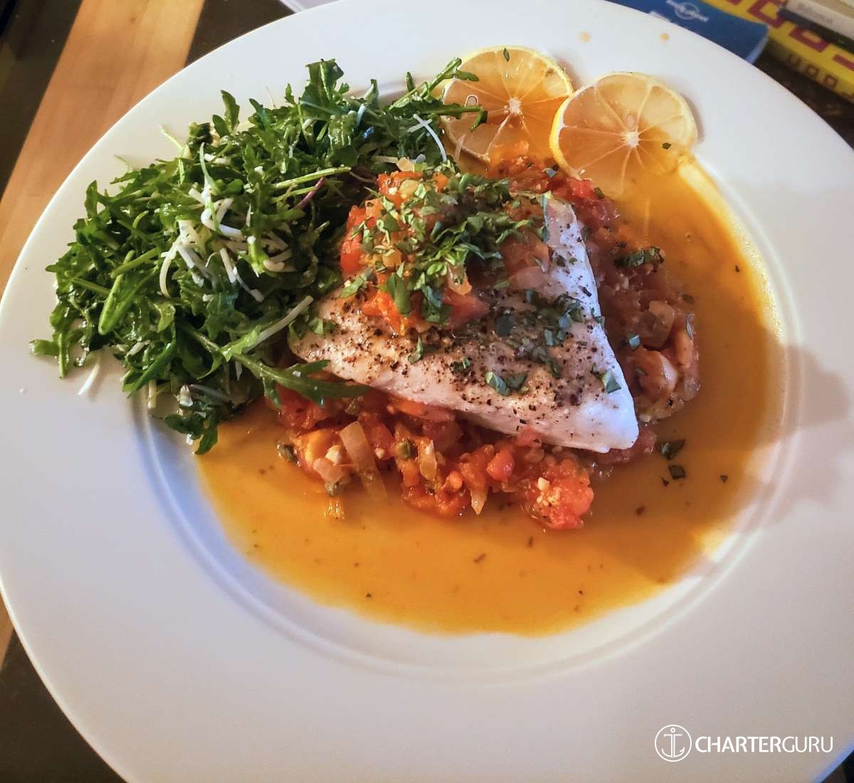 Food......8 Jennie, the first mate, did a great job of preparing food. She also was really into plating and really catering to our group. I would recommend perhaps more bbq - we had hamburgers one day and Jennie grilled them to perfection. That would be my only comment - more grill!